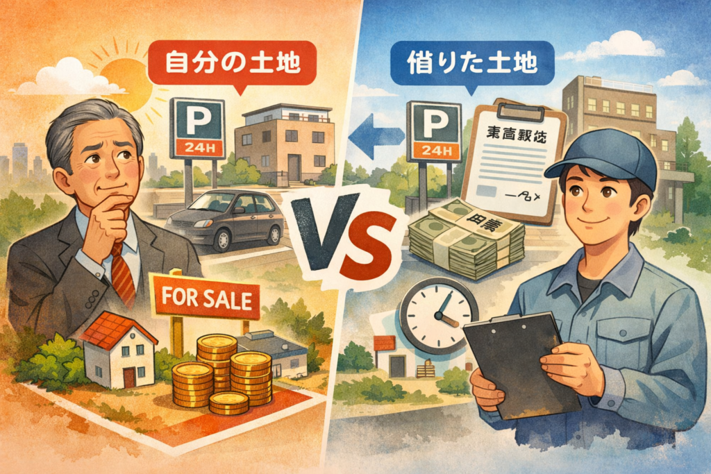「コインパーキング経営は、土地を買って運営した方が強いのか、それとも土地を借りて軽く始める方が合理的なのか」。